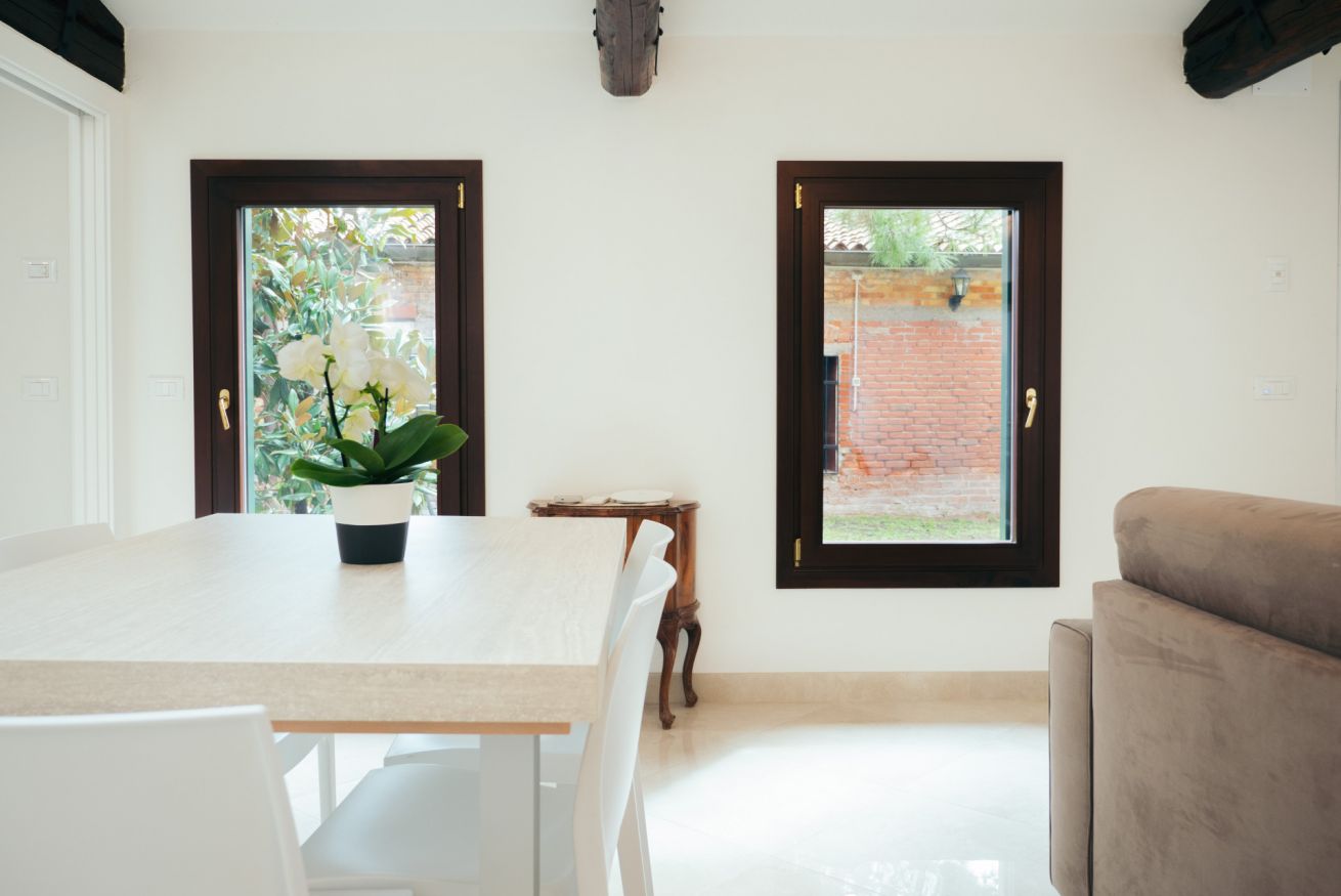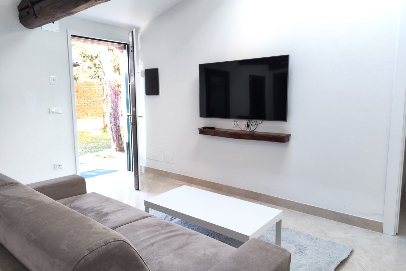 Fantastica e luminosa villa di 80 mq2 di recentissima costruzione, immersa in un soleggiato e silenzioso giardino privato di 150mq2, fornito di ogni confort per un perfetto riposo dopo le affollate visite veneziane. Nella bella stagione è possibile pranzare e cenare all’aperto, prendere il sole o utilizzare internet. Tutto il giardino offre infatti copertura Wi-Fi. La villa con il suo giardino è la perfetta scelta per lunghi soggiorni, anche per periodi di home working.