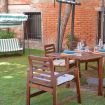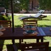 Le travi del tetto a vista, sapientemente illuminate la sera con luci soffuse graduate producono un’atmosfera calda e romantica.